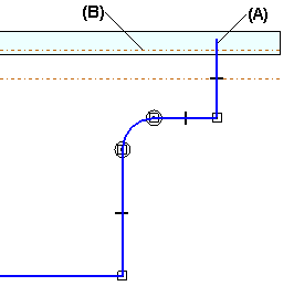 为了更易于正确构造新的轮廓,软件中随着默认弯边轮廓显示两条附加虚线:一条连接线 (A) 和一条构造线 (B)。