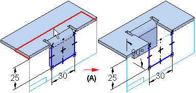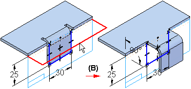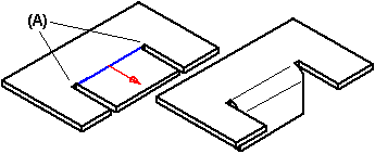 可以使弯边朝着零件偏置 (A),也可以朝着远离零件的方向偏置 (B)。