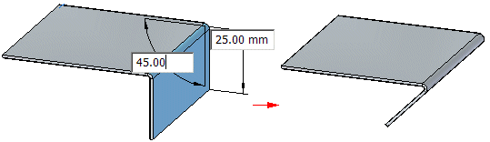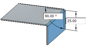 单击后会自动绘制 90° 弯边。但是,指定了弯边的距离后,还可以指定角度。