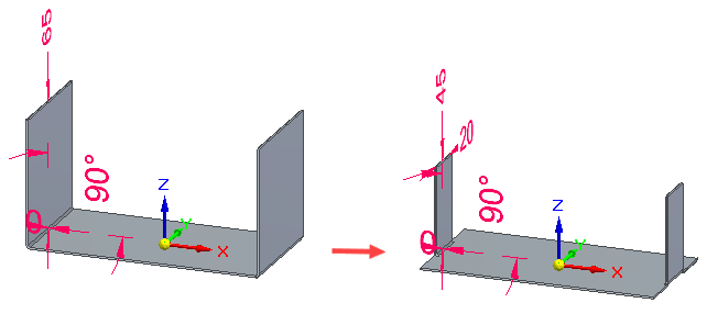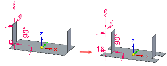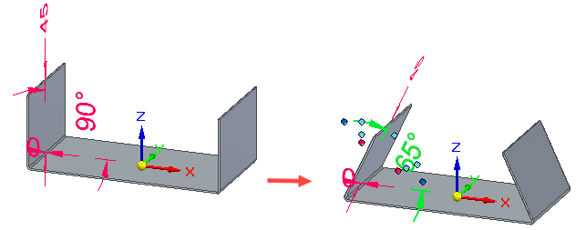 创建弯边后,可以使用编辑定义命令或动态编辑命令来编辑以下参数:角度、