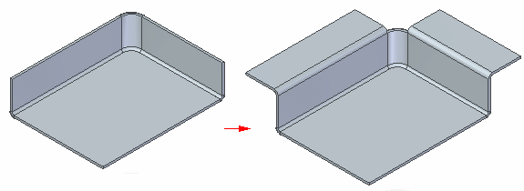 您还可以构造只在您选择的边上延伸一小段距离的弯边。在同步建模环境中,可以使用弯边命令条上的部分弯边选项创建部分弯边。