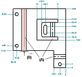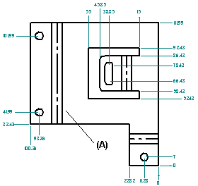您可以在“工程图”环境中创建已展平的钣金件的图纸。在创建展平图样图纸时,可以应用特殊模板。该模板显示相切边,因此,代表折弯边的线 (A) 显示在图纸中。