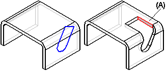虽然“除料”命令可以成功构造除料,但是您可能以后无法展平零件或将特征添加至非垂直面。法向除料特征还可以更好地反映出:该特征可能是先在平直状态制造然后折叠而形成的。
