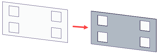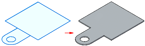 可在钣金件上构造平板特征。可以使用此命令来构造一个基本特征,或将特征添加到现有的钣金件上。