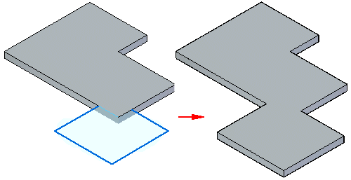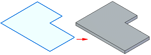 对于同步建模环境中的后续特征,草图可以是开放的,也可以是闭合的。如果草图是开放的,则平板的边必须使草图闭合以形成草图区域。当选择拉伸手柄时,会自动添加后续特征。