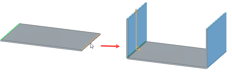 ,通过拉伸代表弯边面的材料来构造弯边。