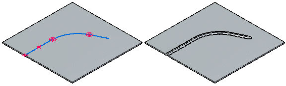 当构造多个不相连的加强筋时,系统会在路径查找器、特征轮廓和钉中为每个不相连的加强筋创建一个条目。加强筋无法展平而且无法跨越折弯。