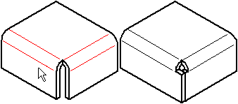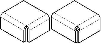 在使用“封闭二折弯角”命令之前,最好应用折弯止裂口和拐角止裂口,以便存在一个清晰角以进行闭合。角应是对称的,且相邻弯边上的折弯半径和折弯角度相等。如果有多种封闭角的方式,则编辑弯边本身,以您需要的方式来封闭角。
