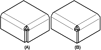 封闭拐角是处理特征。您不必绘制轮廓,只须选择要修改的边缘。对于二折弯角,可指定是封闭角 (A) 还是重叠角 (B)。