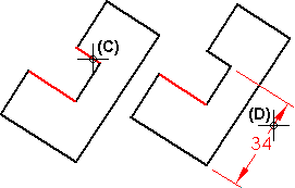 单击要测量的元素 (C),然后单击来放置尺寸 (D)。