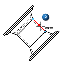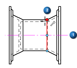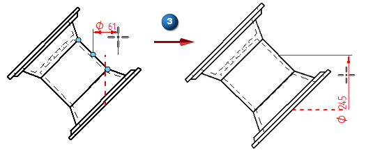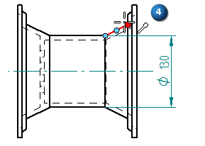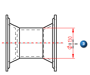 软件在动态模式下显示第一个对称尺寸和隐含中心轴。要将轴方向改变 90 度,请按住 Alt 键并移动光标 (3)。