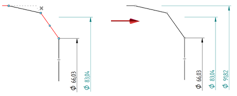当您单击一个关键点或几何元素时,软件会自动放置第一个尺寸后的所有尺寸。