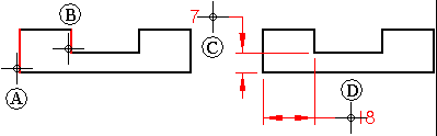 在单击您想要标注其间距的两个元素之后 (A, B),尺寸的方位会随着光标位置的变化而变化 (C, D)。