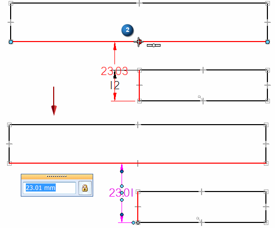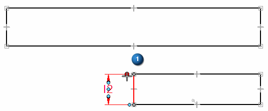 要保持驱动尺寸值(从而修改特征),请同时按住 Ctrl 键和 Alt 键将连接手柄拖动至新元素 (3)。将关键点定位于元素后,松开鼠标键,然后松开 Ctrl 和 Alt 键。