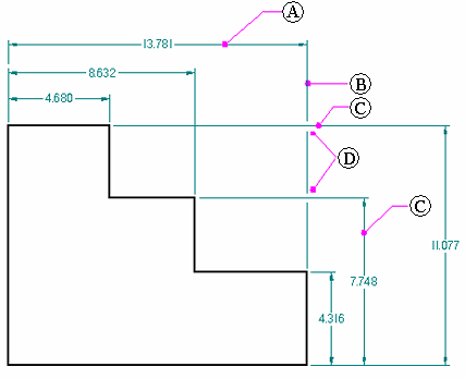投影线间隙的用途是加入明显的空白并提高可读性。间隙的大小在“尺寸属性”对话框的“线和坐标”页面上设置。