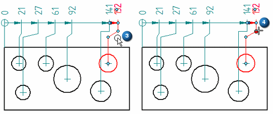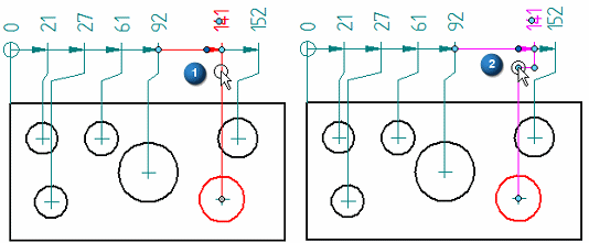 选择现有尺寸 (1) 显示尺寸编辑手柄。