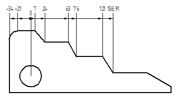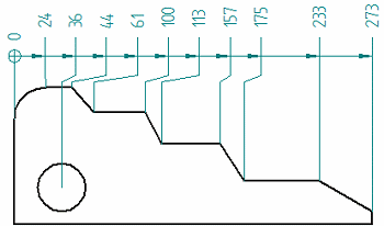 示例:对于水平/竖直方向,添加到原点尺寸左侧的坐标尺寸具有负值。添加到右侧的尺寸为正值。