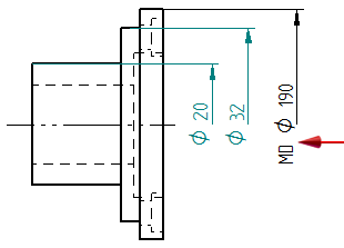 =半的情况下创建的对称直径尺寸。