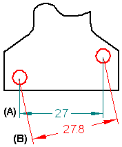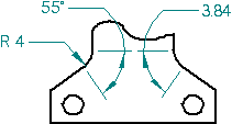将切线距离尺寸置于两条圆弧、椭圆或曲线之间。 |