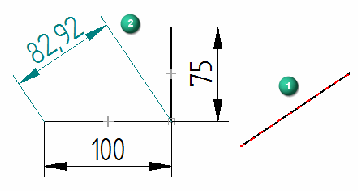 当默认的横向轴或纵向轴不适合所标注尺寸的几何体使用时,或当您要放置引用另一元素的尺寸时,可使用此选项。选择尺寸轴后 (1),下一个尺寸应与该轴平行放置 (2)。