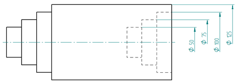 注释:对于层叠对称直径尺寸,可以使用线和坐标选项卡(尺寸样式和尺寸属性)对话框上的错开文本位置选项来改变层叠中的尺寸文本的位置(如上图所示)。