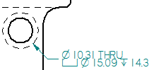如果为相切尺寸仅选择两个元素中的一个,尺寸将从非相切元素的关键点放置到距鼠标单击处最近的元素的切向。