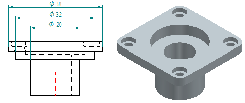 对称直径尺寸平行或垂直于中心轴放置。您可以选择一个线性元素来指定轴,也可以选择两个关键点来定义隐含轴。在放置以及编辑期间,中心轴显示为红色虚线。