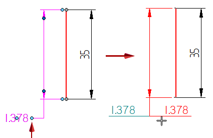 对于带折线的尺寸文本,更改折线长度并将尺寸文本移到折线的另一侧。