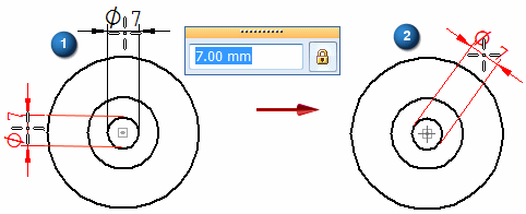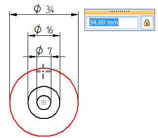 可以放置同心直径尺寸以使其层叠、对齐并从小到大自动排序,与选择几何体的顺序无关。使用此方法时,尺寸自动构成尺寸组。