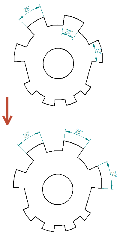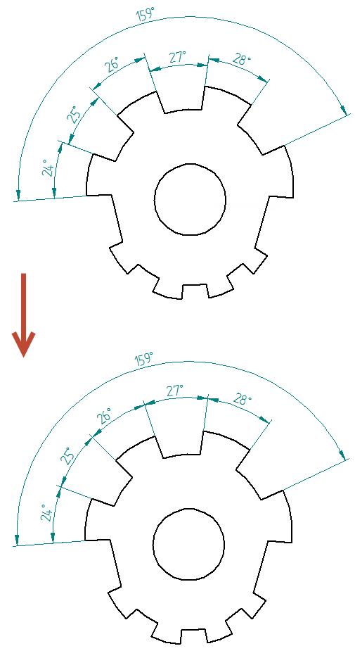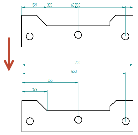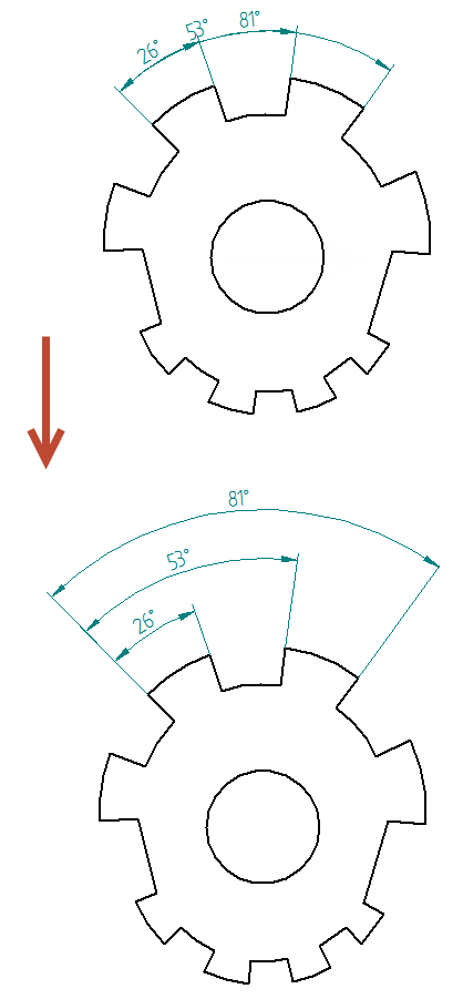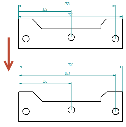 - 对称直径尺寸和同心直径尺寸排列在线性尺寸之前。