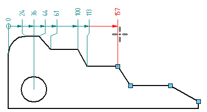 (要使用相同原点创建新的对齐集时的操作)选择一个现有的坐标尺寸。按住 Alt 键并同时移动光标将尺寸定位到所需的对齐上。单击以放置尺寸。