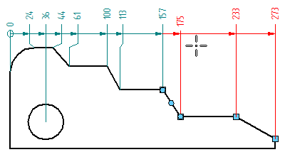 (要将尺寸添加到现有对齐集中时的操作)选择一个现有的测量尺寸,然后单击以在高亮显示的关键点上放置新尺寸。