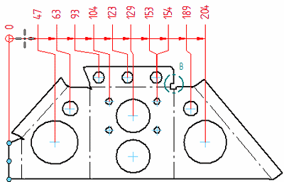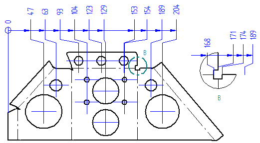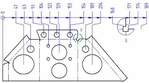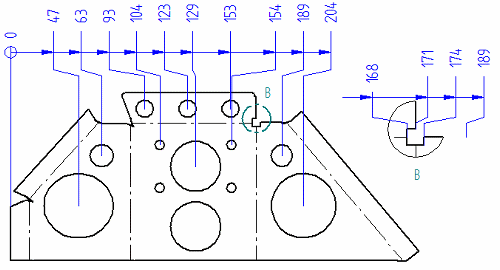 单击主图纸视图中的一个坐标尺寸,以此标识您要在局部放大图中引用的对齐集。
