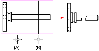 可定义要在零件视图中移除的区域。这样便可为细长零件创建一个断开视图,从而可以更大的比例来显示它。