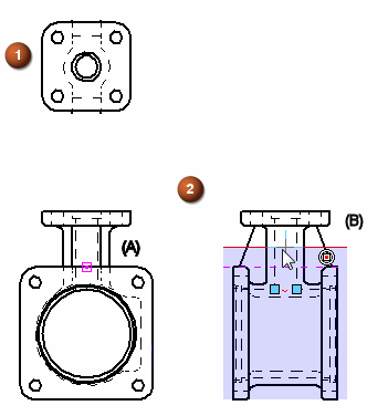 单击其他关键点(例如中心点、端点或中点)或中心线。(2B)