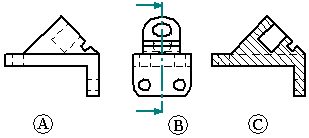 然后还可以使用那些零件视图来创建更多零件视图。例如,如果您根据原视图 (A) 创建主视图 (B),则可以根据该主视图创建剖视图 (C)。