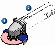 例如,在为打磨机创建一个头状体子装配 (1) 时,可能要将框架和开关 (2) 显示为参考零件,以说明头状体子装配和成品之间的关系。