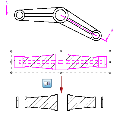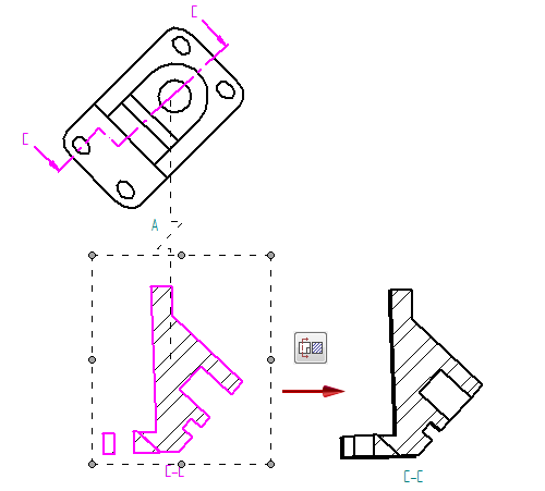 有关各种剖视图的示例,请参见剖视图命令(工程图环境)。