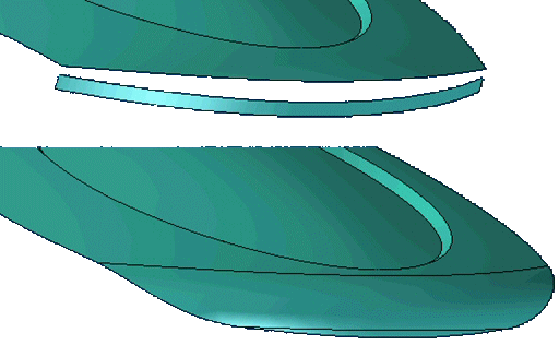 相切保持线仅对于复杂倒圆,为倒圆定义相切保持线。可以为每个输入面或仅为其中一个输入面定义相切保持线。