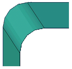 斜角 - 使用一个值控制从相邻面除料的量来创建斜角倒圆。设置此选项时,圆角面的尺寸由“回切”选项指定,从相邻面除料的量则由“值”选项确定。可以键入一个大于 0 但小于等于 10.0 的值。输入值 1.0 将创建 45 度斜角。