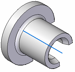 要构造旋转特征,请将旋转手柄移动到线性草图元素、模型边缘,或移动到圆柱面的中心,该圆柱面定义要围绕其旋转草图的轴。在下例中,轴元素与定义旋转特征横截面的草图区域分离。