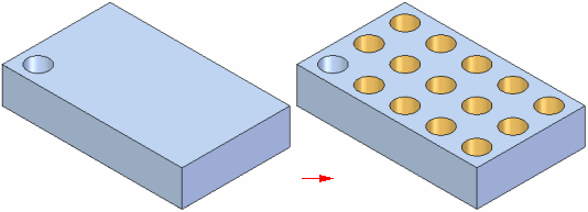 “快速”阵列选项通常用于生成大型、简单的图样,如全部位于和父级元素相同的面上一列孔或特征。该命令不检查几何图形是如何与模型中的其他特征相互作用的。