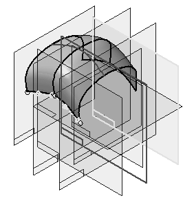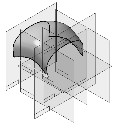 插入引导曲线方向的草图时,它穿过了另一个草图。蓝面命令自动在曲线相交处插入“蓝点”。如果横截面方向有多个草图,则沿引导曲线方向插入的草图将与蓝点连接。
