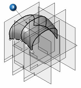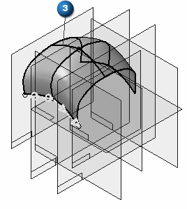 沿引导曲线的方向插入草图 (3) 并观察结果。再次使用平行平面。