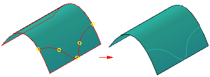 当定义要在其上绘制曲线的面时,可选择一个或多个面。只能在边界以内的区域内绘制,且曲线只能位于边界以内。落在曲面以外或伸出修剪区域的曲线将被修剪掉。