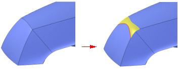当绘制的曲线穿过不相切的面时,必须将点置于公共边上。