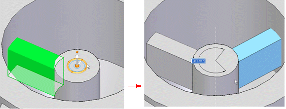 您选择要复制的几何体后,将显示方向盘。方向盘的位置和方向得以记录。方向盘的位置是相对于选定几何体的,而方向是相对于源文档记录的。