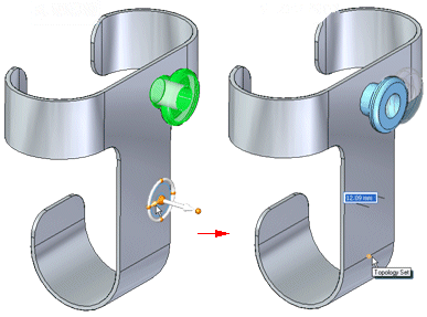 放置之后,任何封闭的实心体均作为实体粘贴到模型。但是,面和制造特征是作为拆离的几何元素添加的。一旦粘贴,则使用附加命令将几何元素作为实体附加到模型。