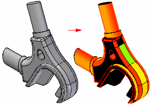 也必须使用着色或带可见边的着色命令来对活动窗口添加着色以显示拔模面分析颜色。