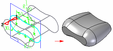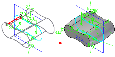 根据您指定的选项,为半径、移去和偏置值添加尺寸。可以使用“冠状面参数”对话框、变量表或用光标选择尺寸来编辑尺寸值。